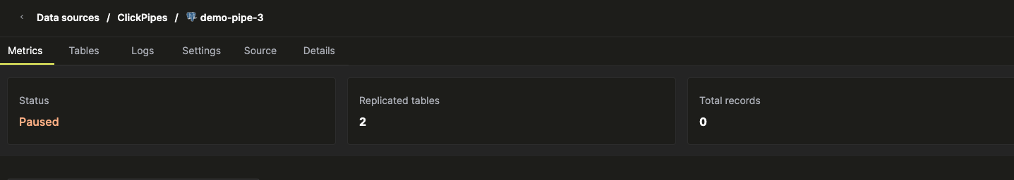 2. Примерно через 5 секунд (а также после обновления страницы) статус ClickPipe должен стать Paused.
